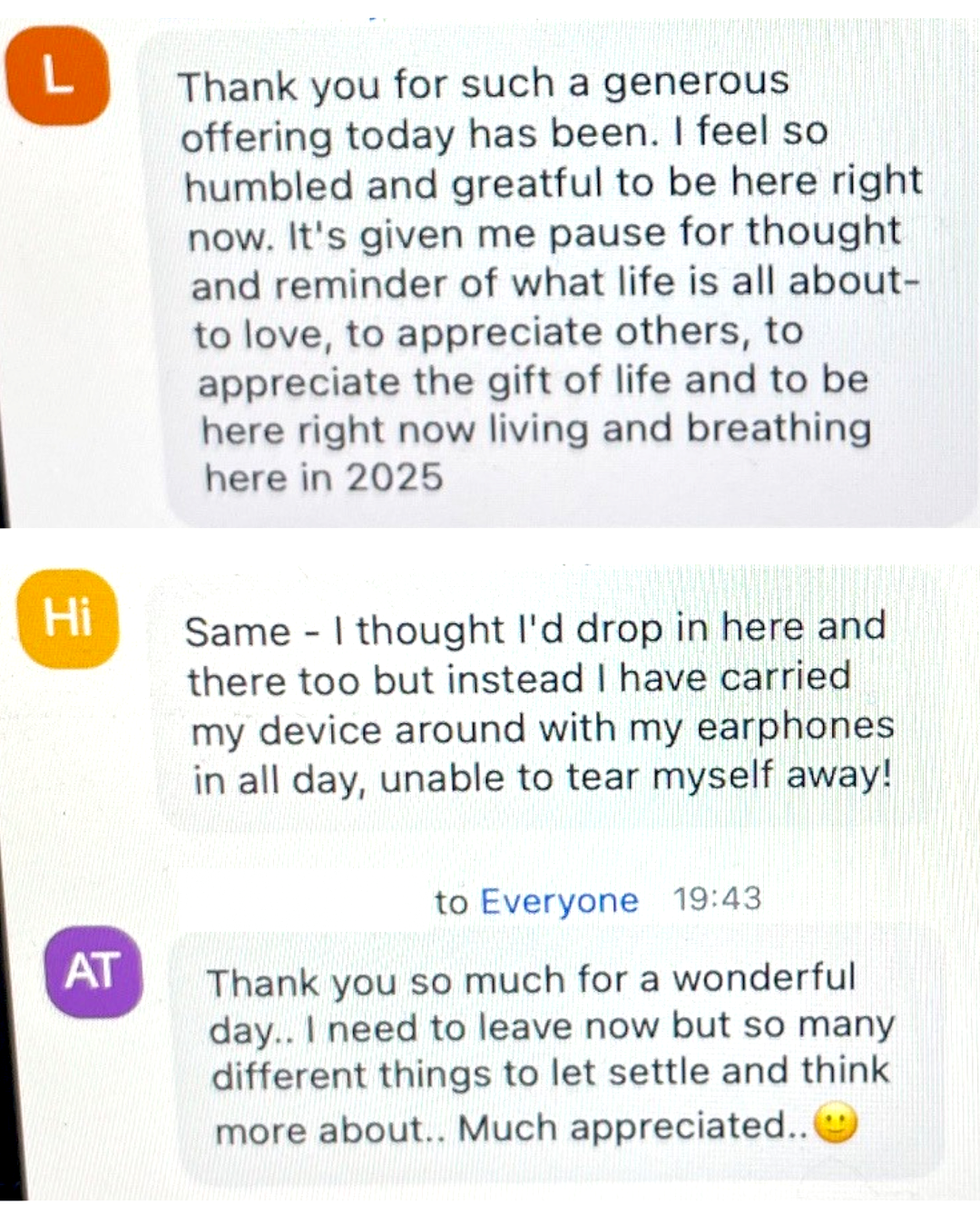 We were deeply moved by the outpouring of love and connection in our live chat. Nothing speaks louder than the experience of our participants, so we’ve captured these unfiltered moments to share a glimpse into the hearts and minds of those who joined us on Love in Action 2025.